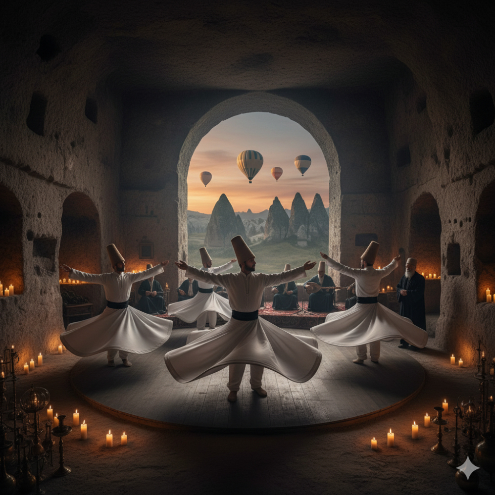 Sema töreniyle Mevlevi geleneğinin mistik atmosferine tanıklık edin. Işık, müzik ve dansın birleşimiyle ruhsal bir deneyim yaşayın.
