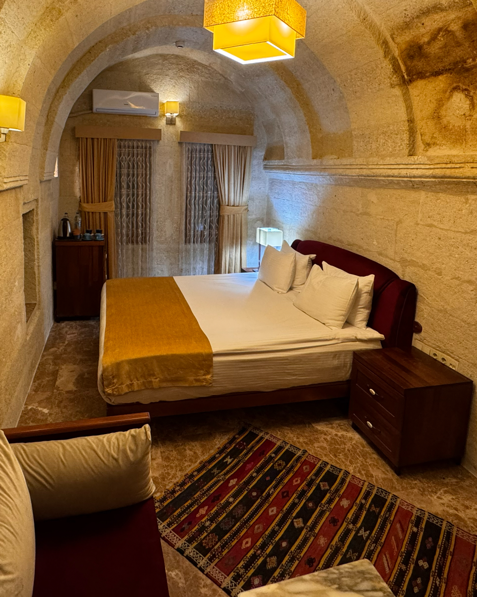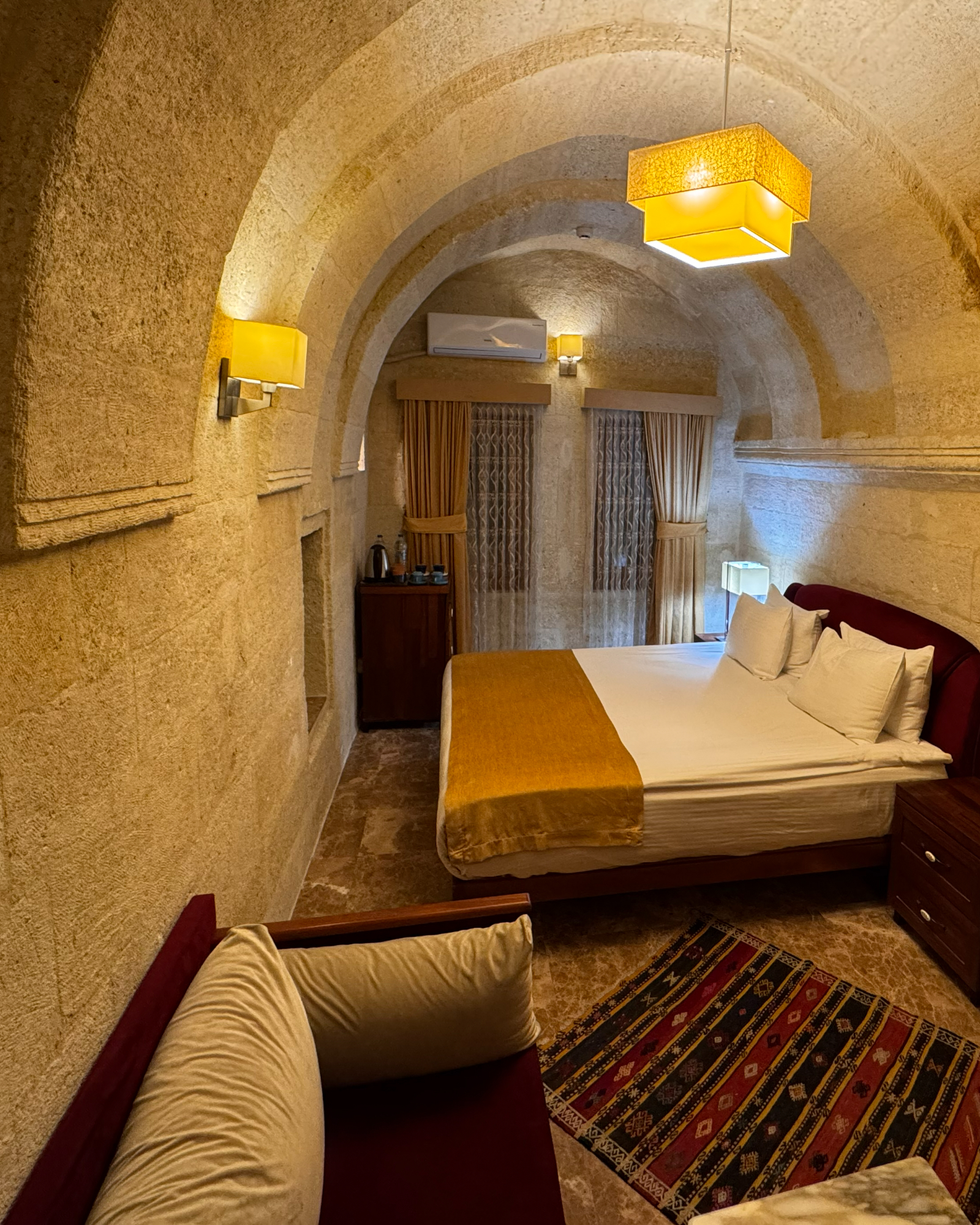 Family Room, Kapadokya’da aileler için tasarlanmış konforlu ve sıcak bir oda deneyimi sunar. Çavuşin Kalesi manzarası ve modern konforla tatiliniz unutulmaz olur.