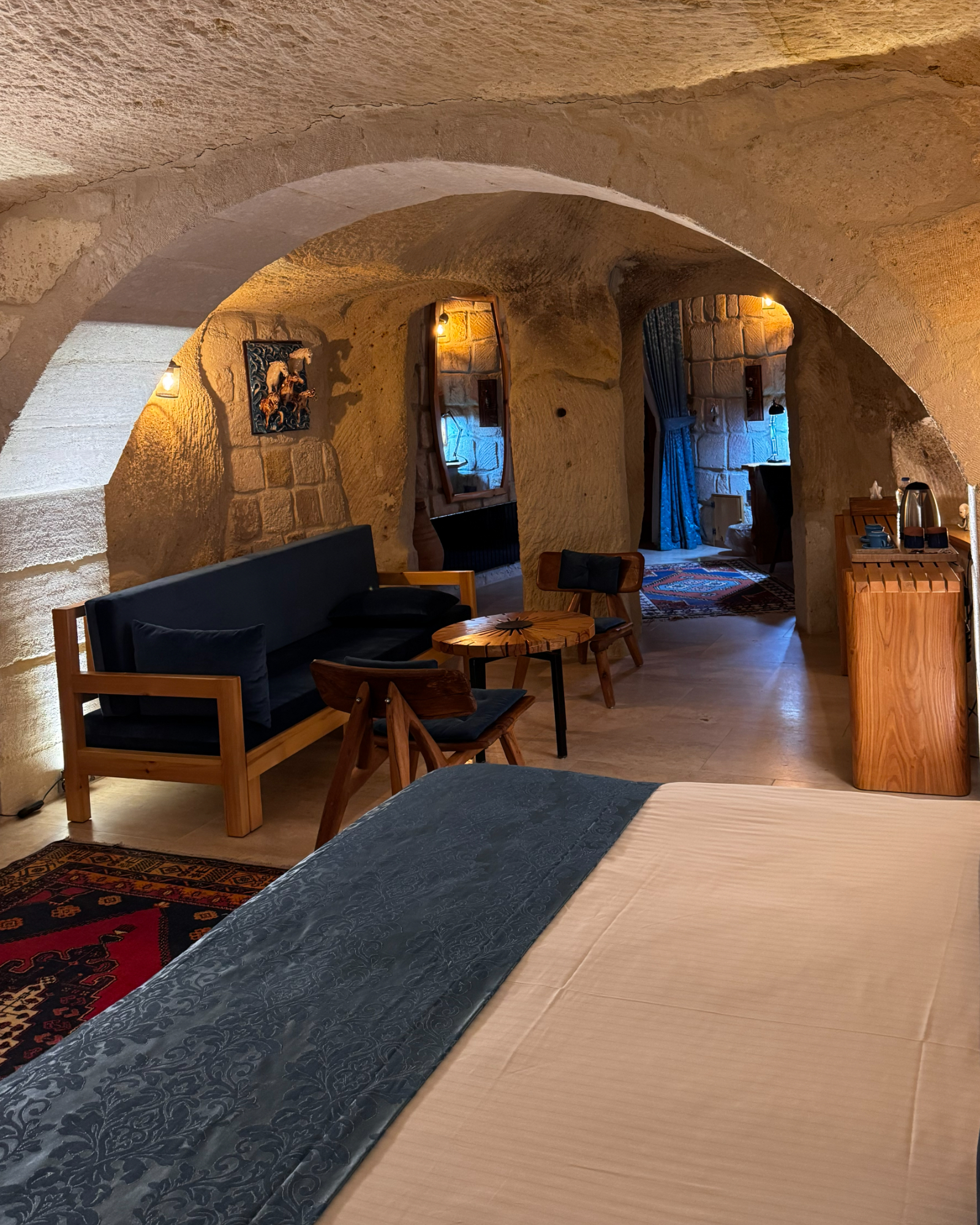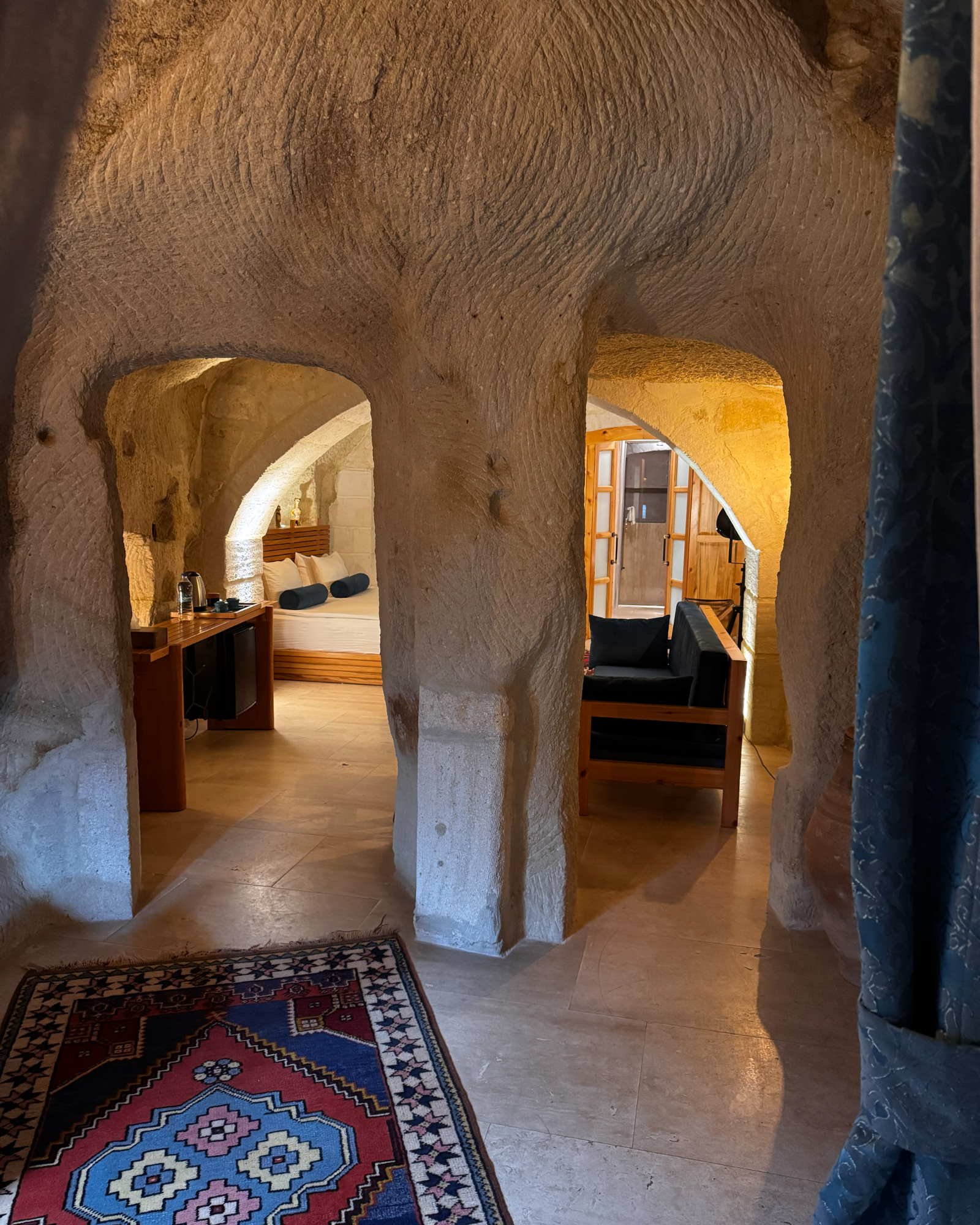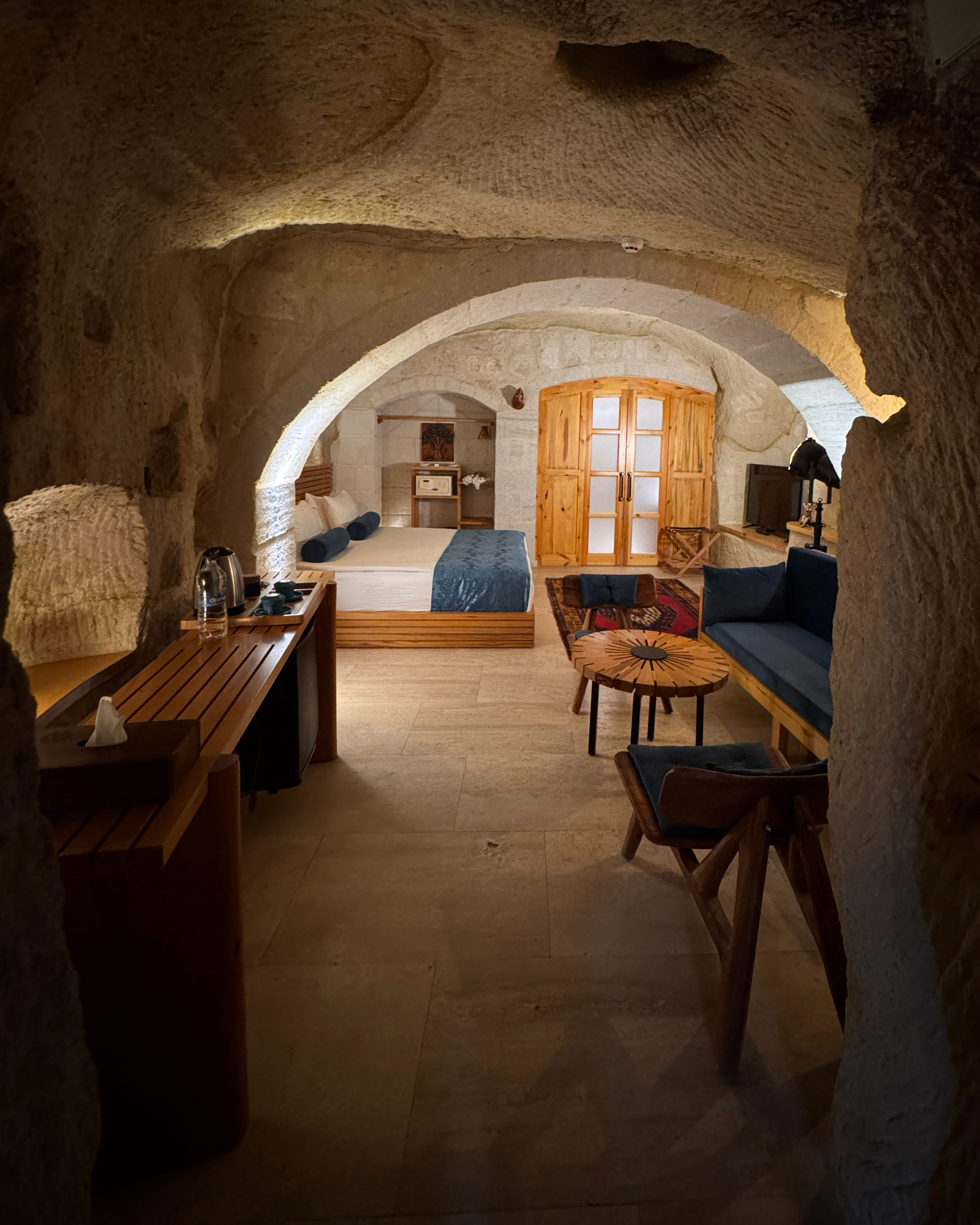 Junior Cave Suite, romantik kaçamaklar ve küçük aileler için tasarlanmış, modern konforlu bir mağara süitidir. Çavuşin Kalesi manzarası ve Damla küveti ile tatilinizi unutulmaz kılar.