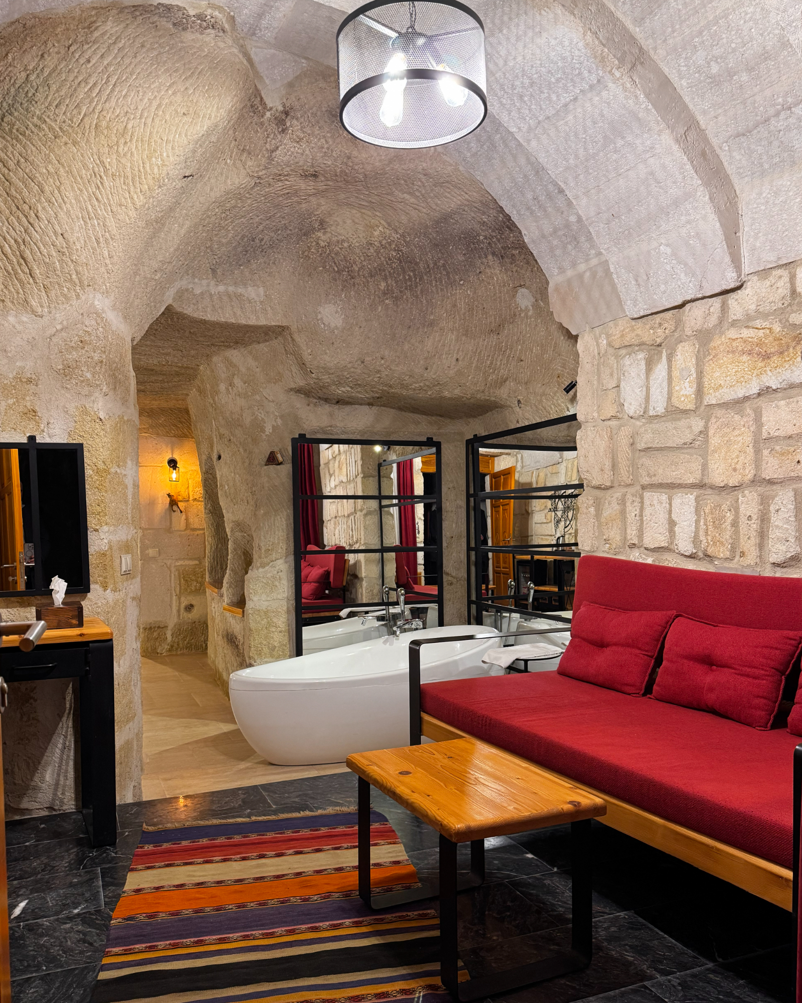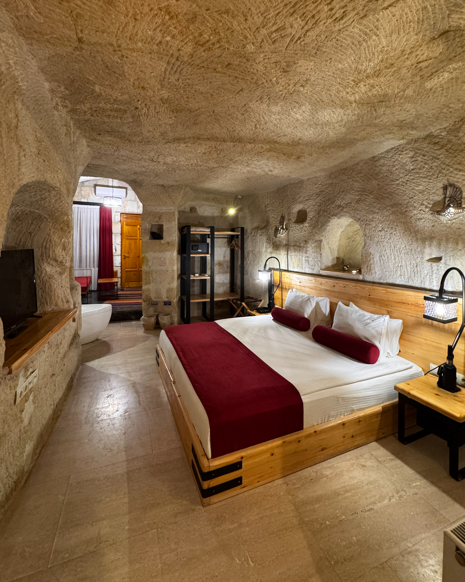 Junior Cave Suite, romantik kaçamaklar ve küçük aileler için tasarlanmış, modern konforlu bir mağara süitidir. Çavuşin Kalesi manzarası ve Damla küveti ile tatilinizi unutulmaz kılar.