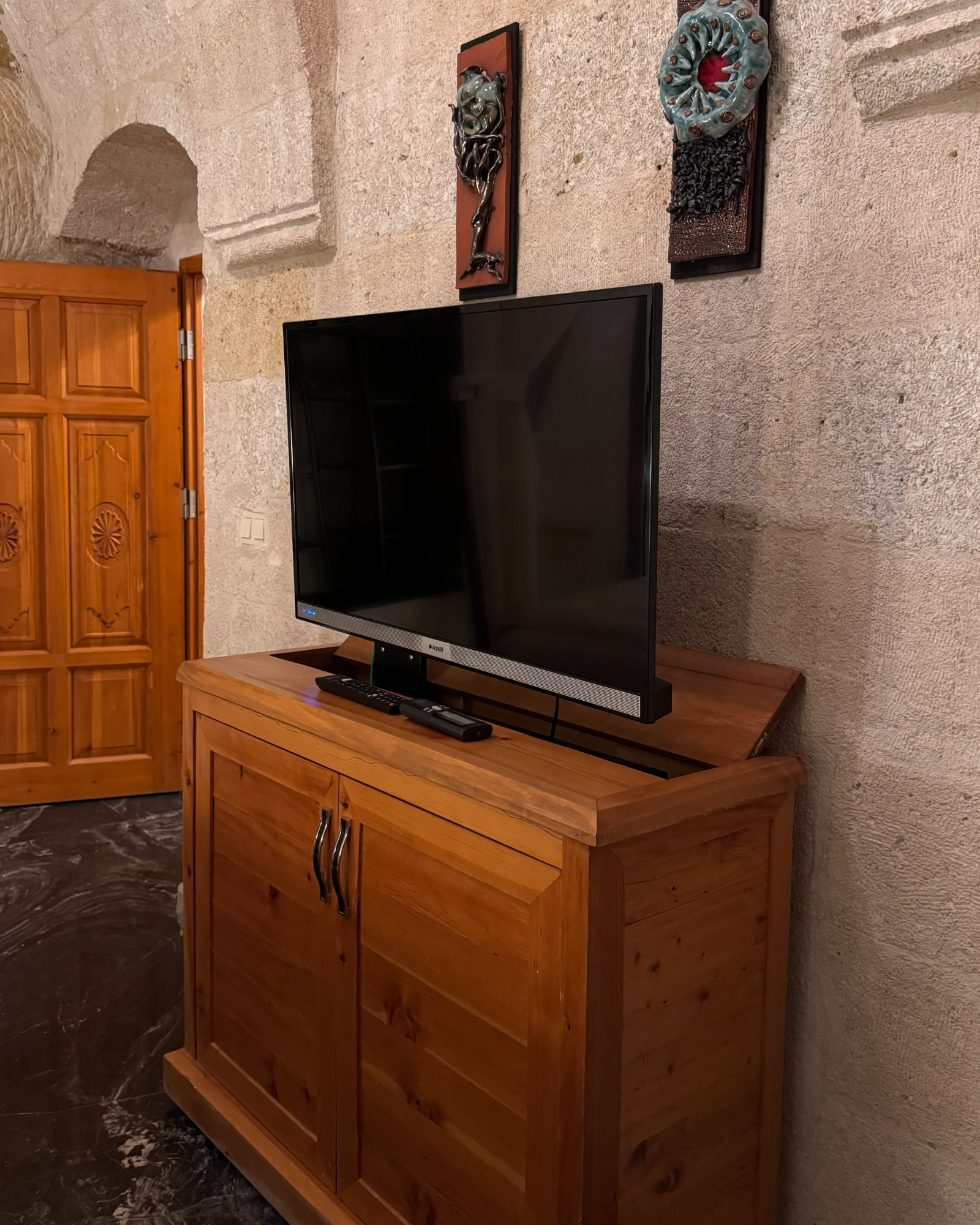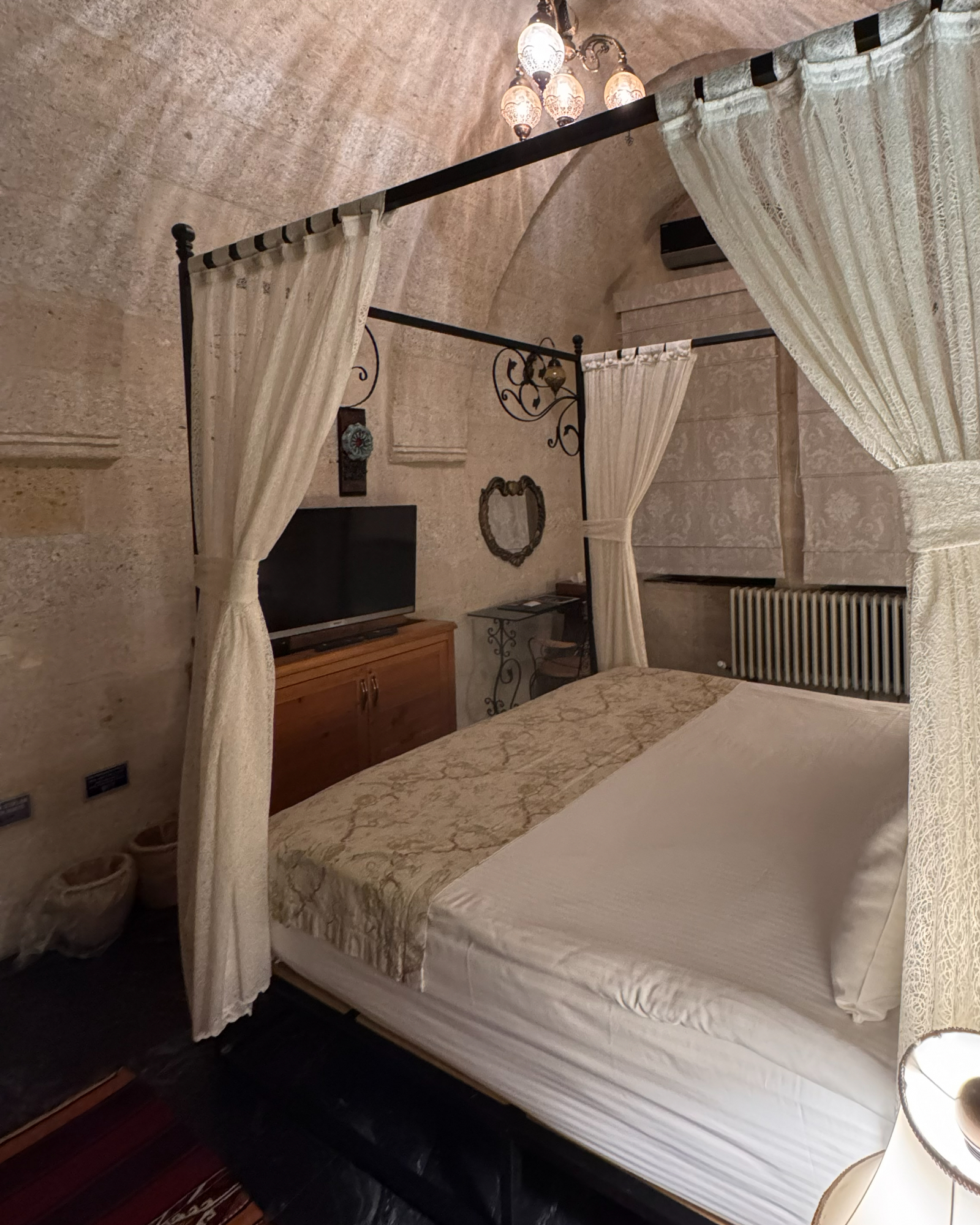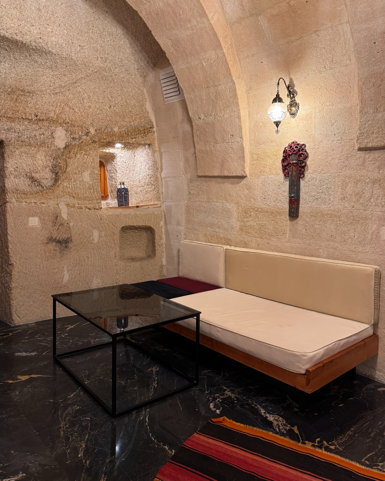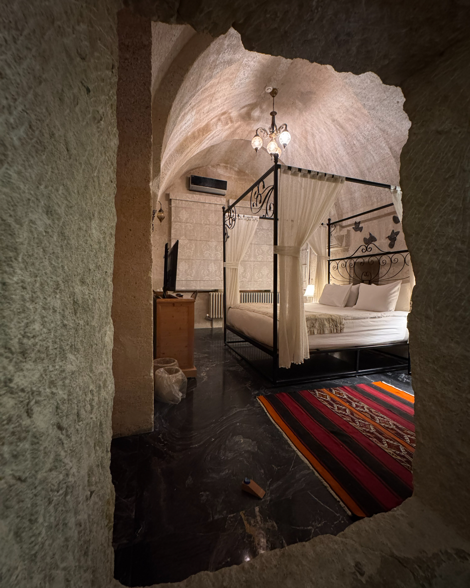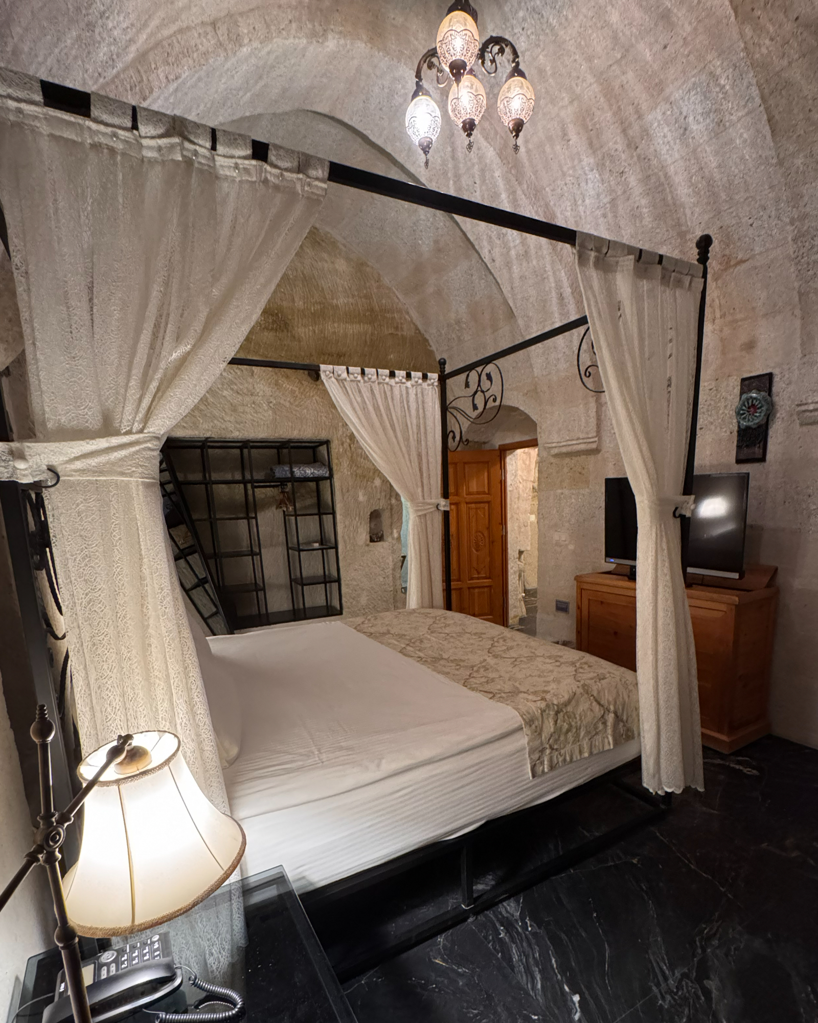King Cave Suite, jakuzi, şömine ve Çavuşin Kalesi manzarası ile Kapadokya’da lüks ve özel bir süit deneyimi sunar.