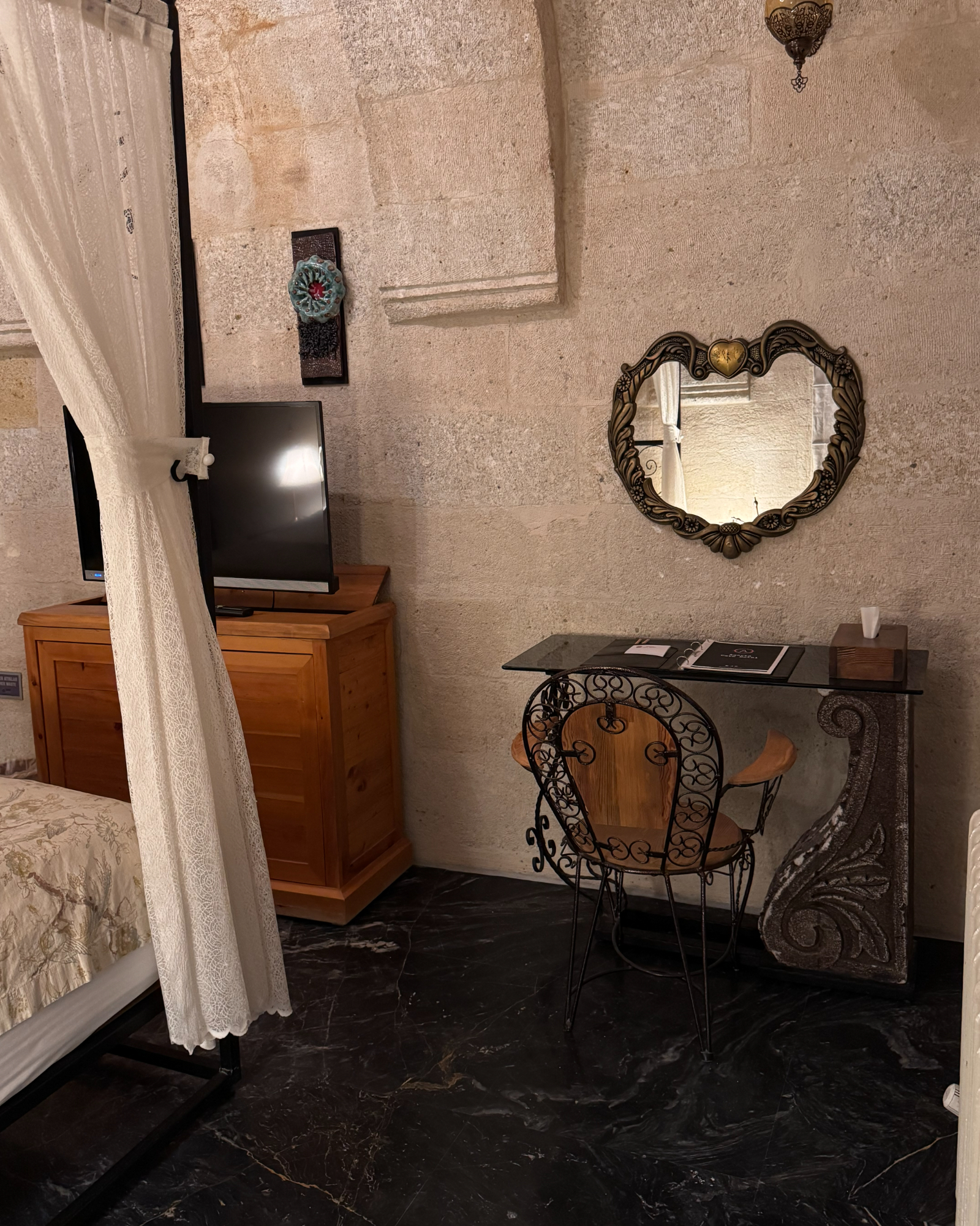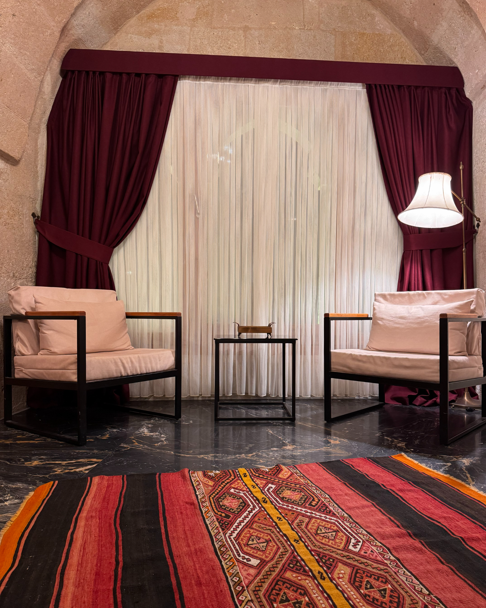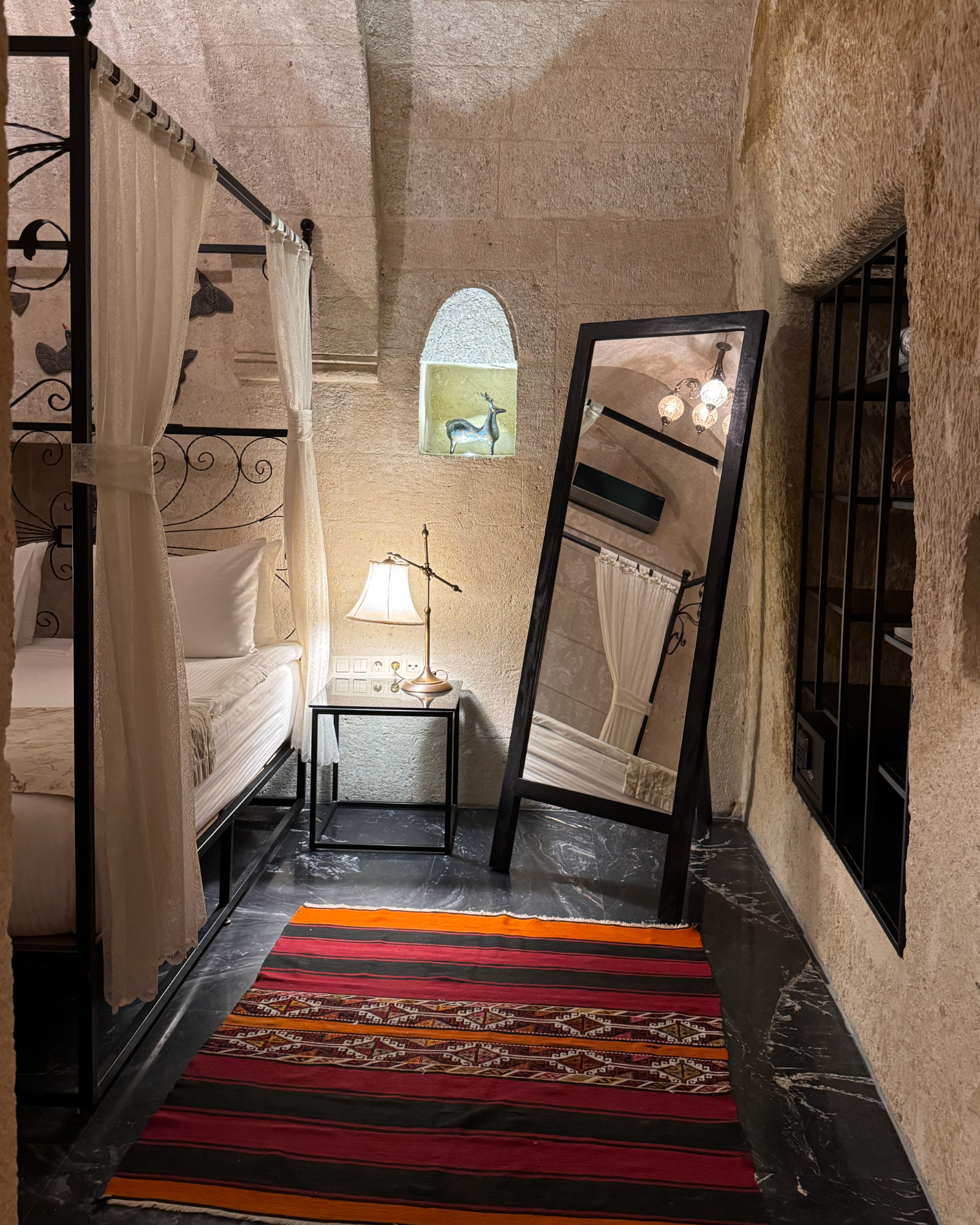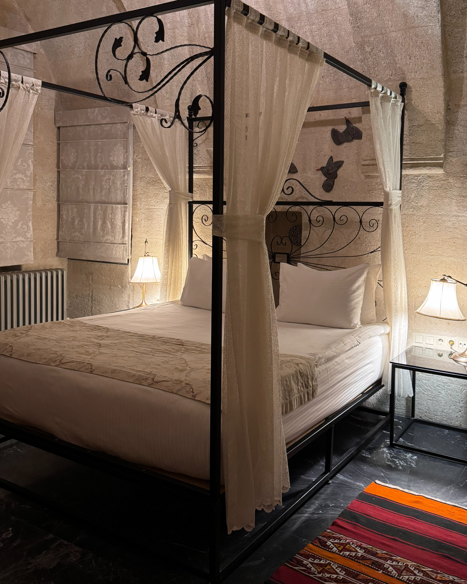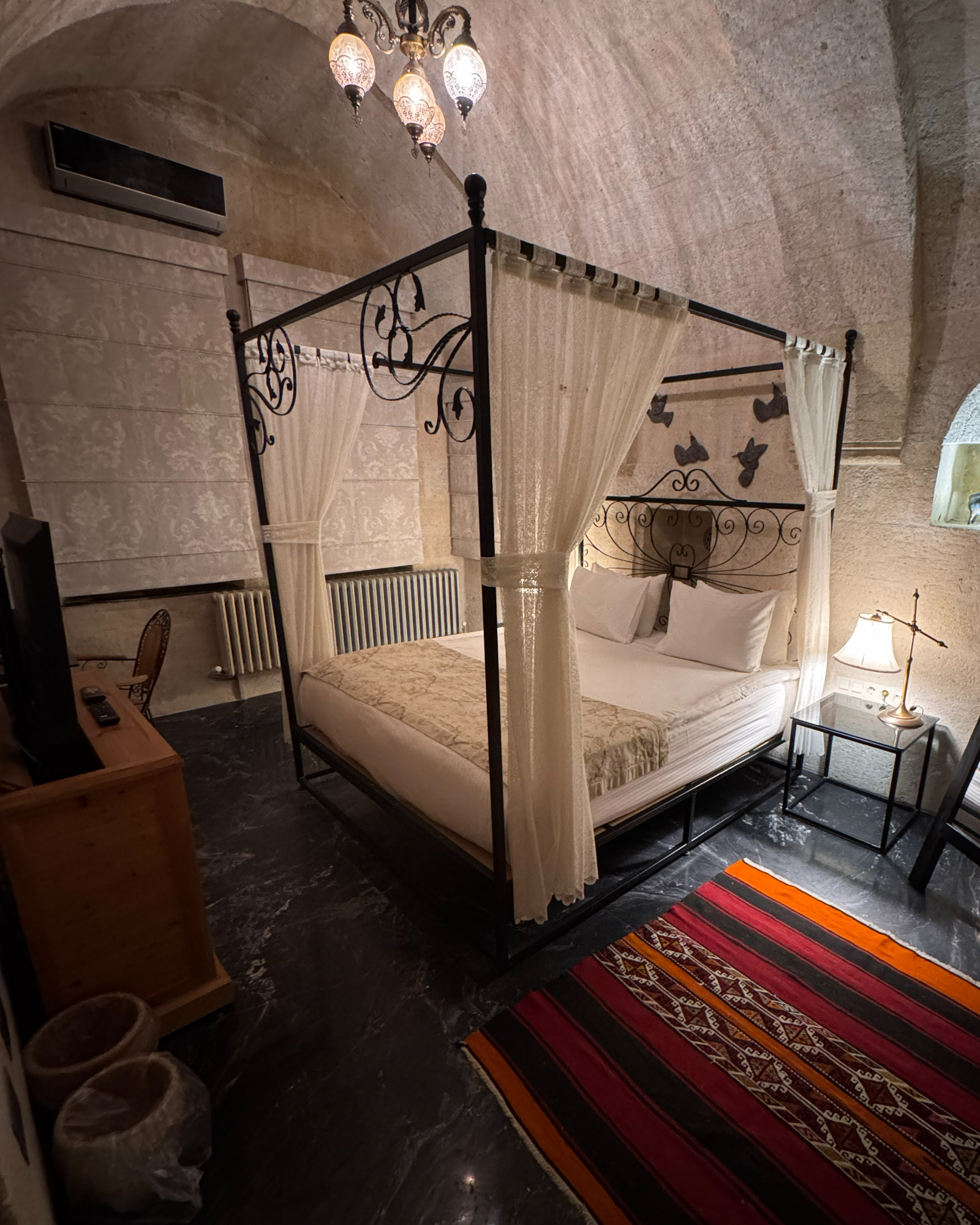 King Cave Suite, jakuzi, şömine ve Çavuşin Kalesi manzarası ile Kapadokya’da lüks ve özel bir süit deneyimi sunar.