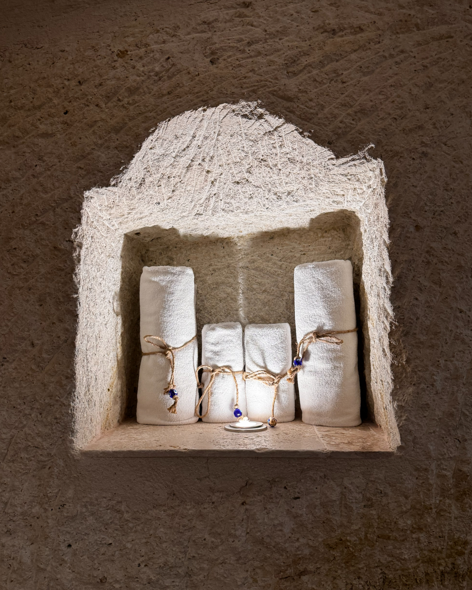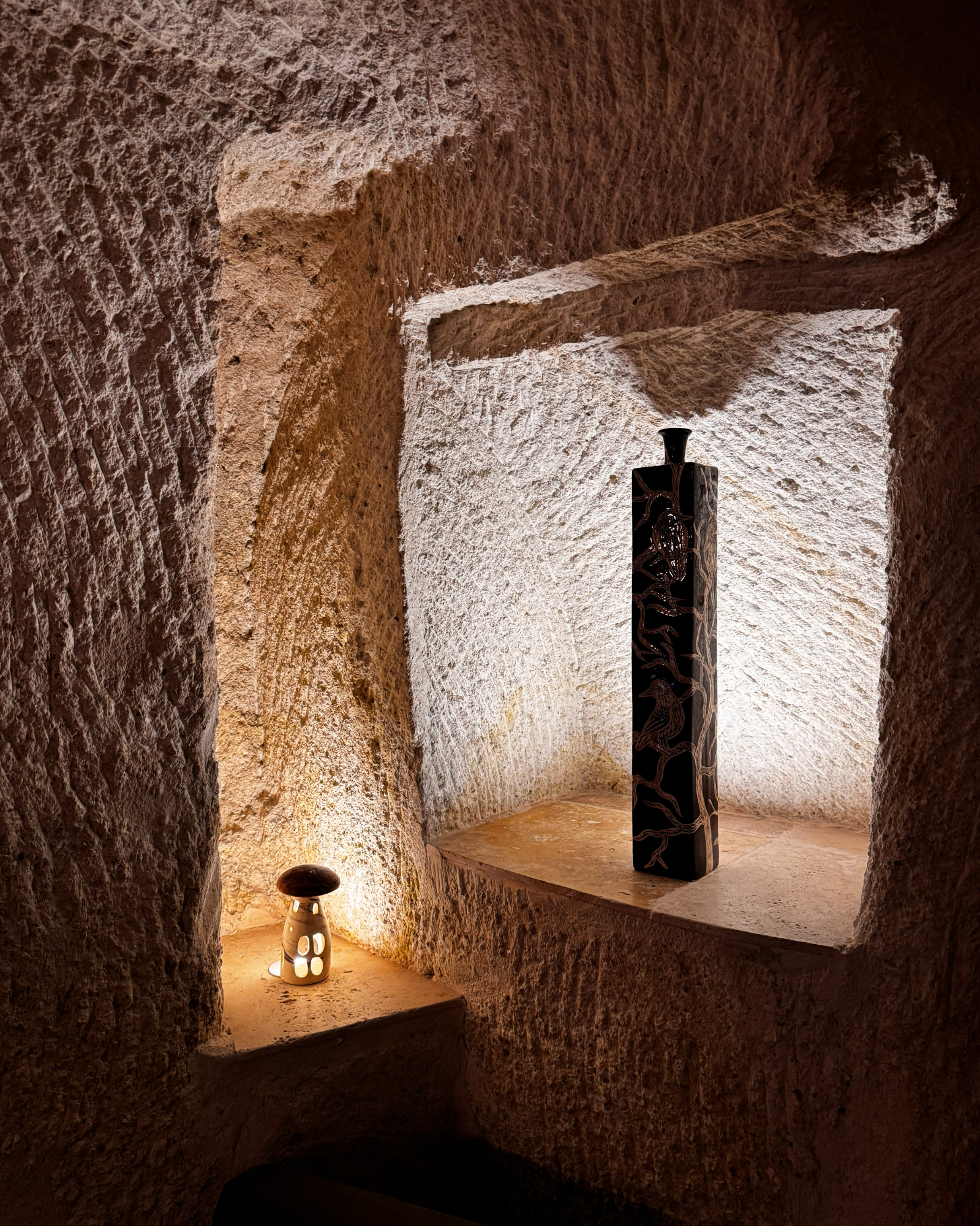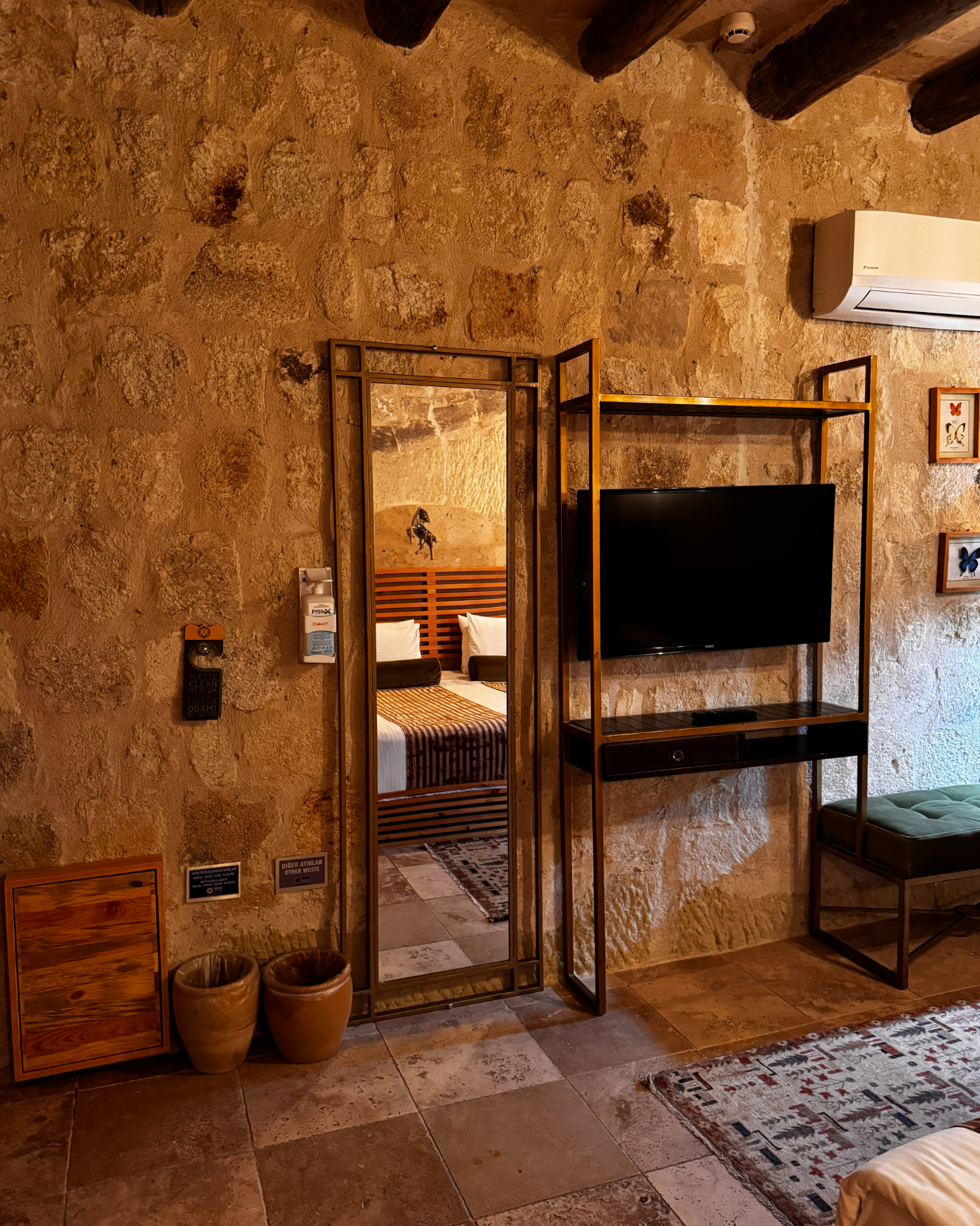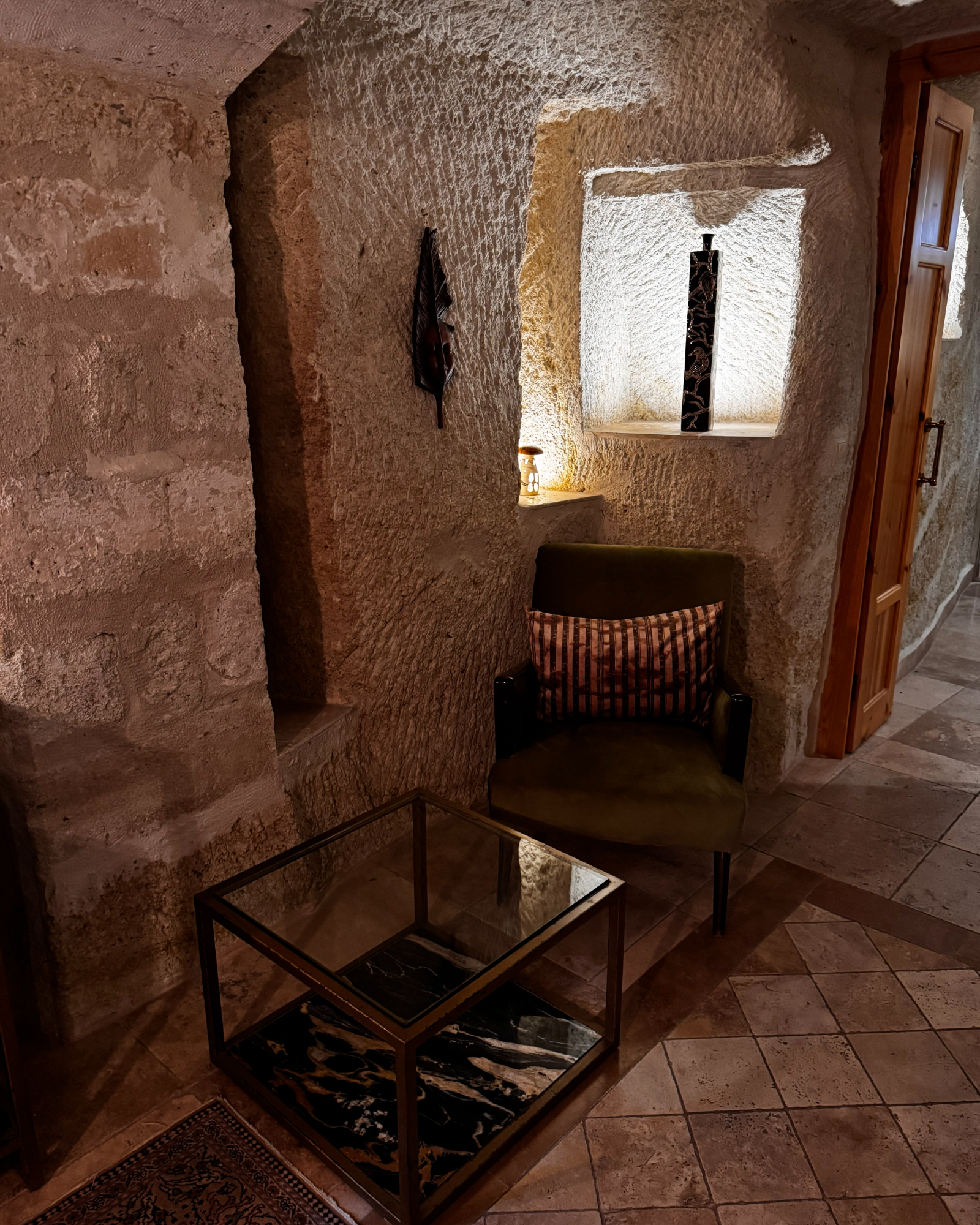 Superior Deluxe Room, teras şöminesi, mini Türk hamamı ve Kapadokya manzarası ile lüks ve otantik bir mağara oda deneyimi sunar.