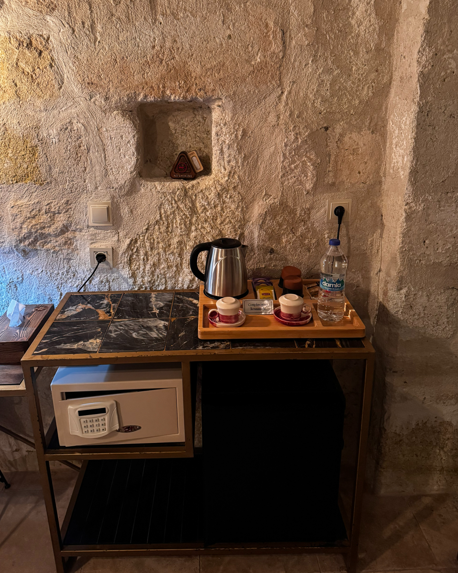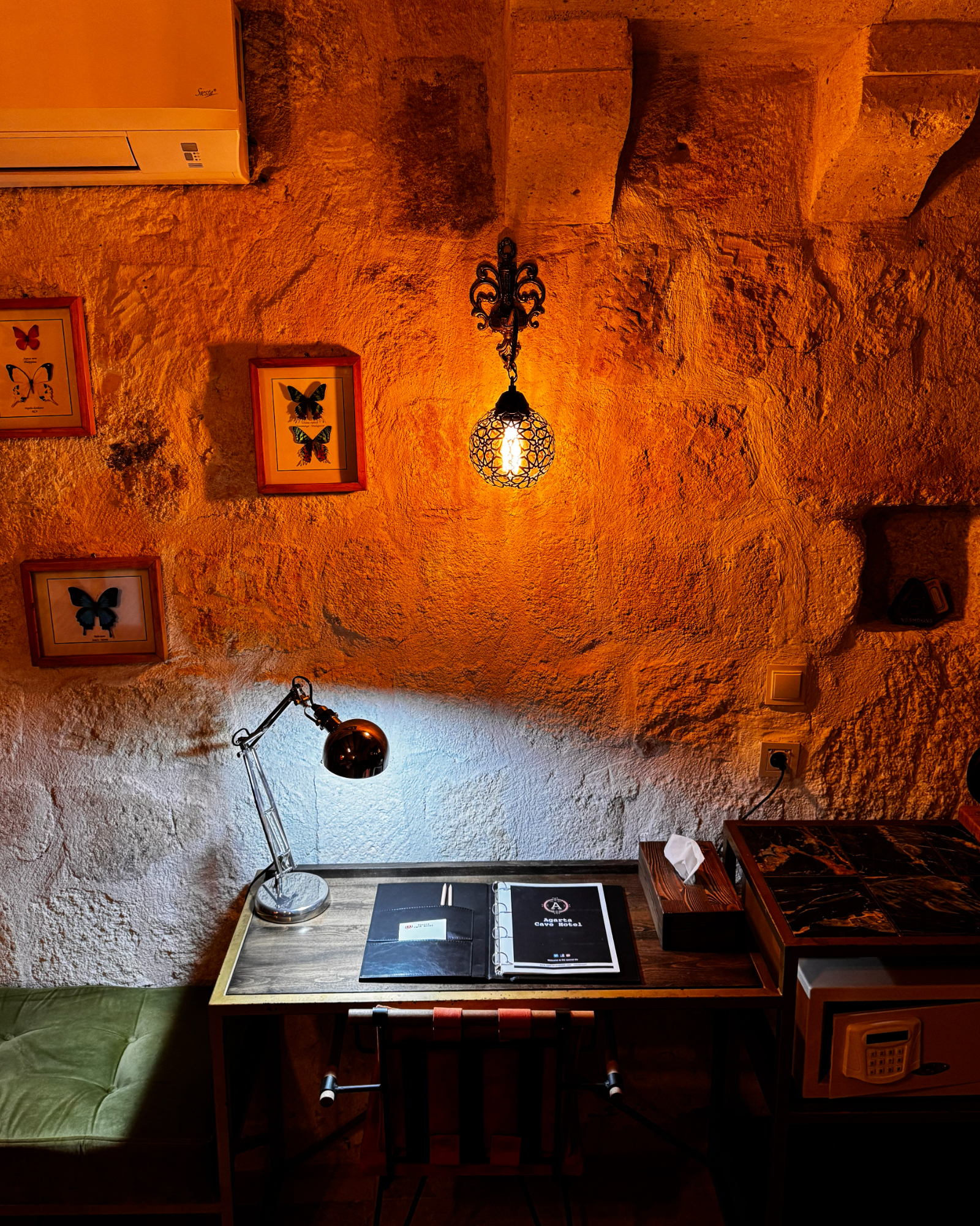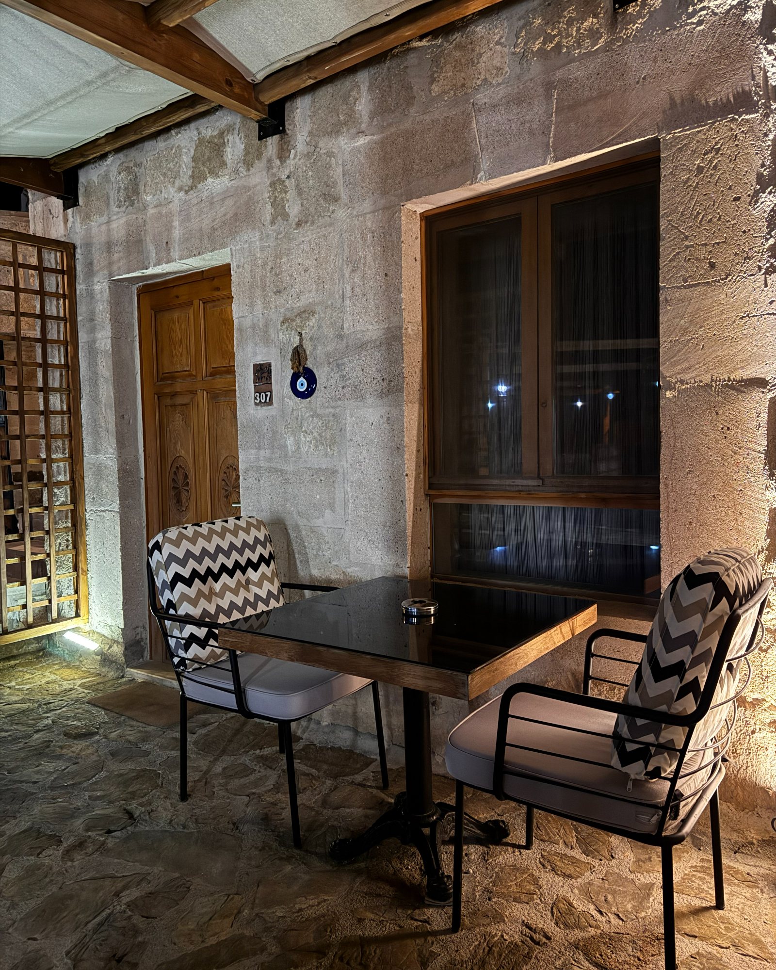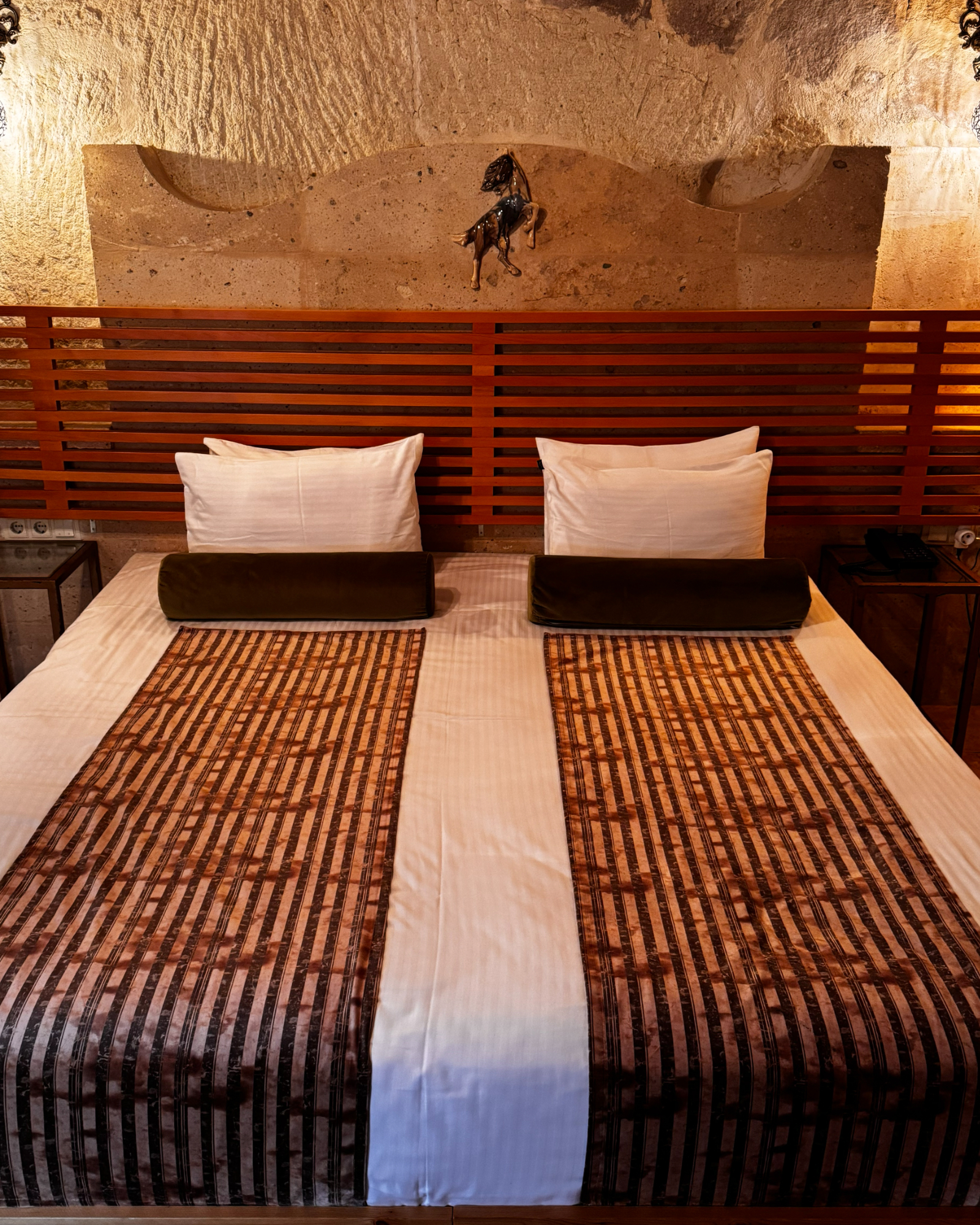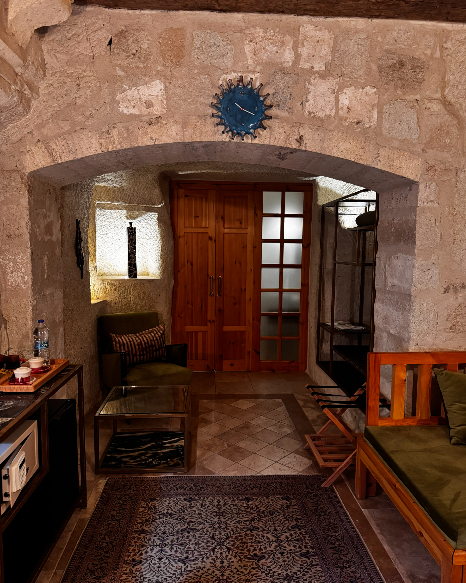 Superior Deluxe Room, teras şöminesi, mini Türk hamamı ve Kapadokya manzarası ile lüks ve otantik bir mağara oda deneyimi sunar.